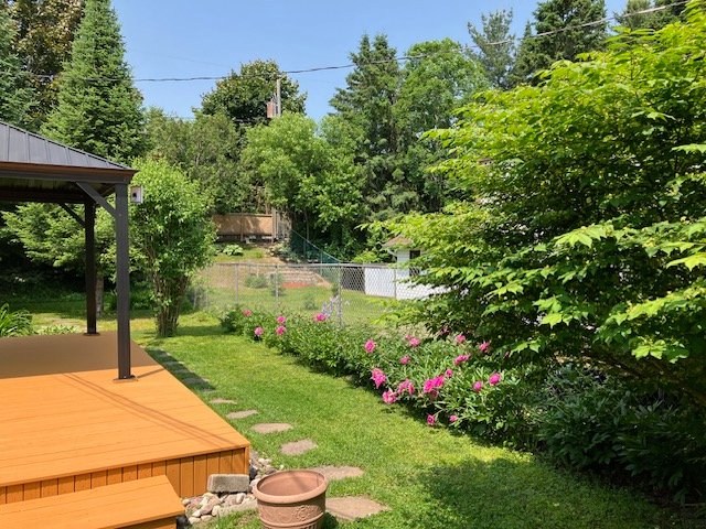 Remise, Gazebo, table de jardons et 4 chaises, cuisinière, frigo, lave-vaisselle, ilot, thermopompe, fournaise, chauffe-eau, poêle à granule, stores, rideaux, micro-onde, tablettes au sous-sol.