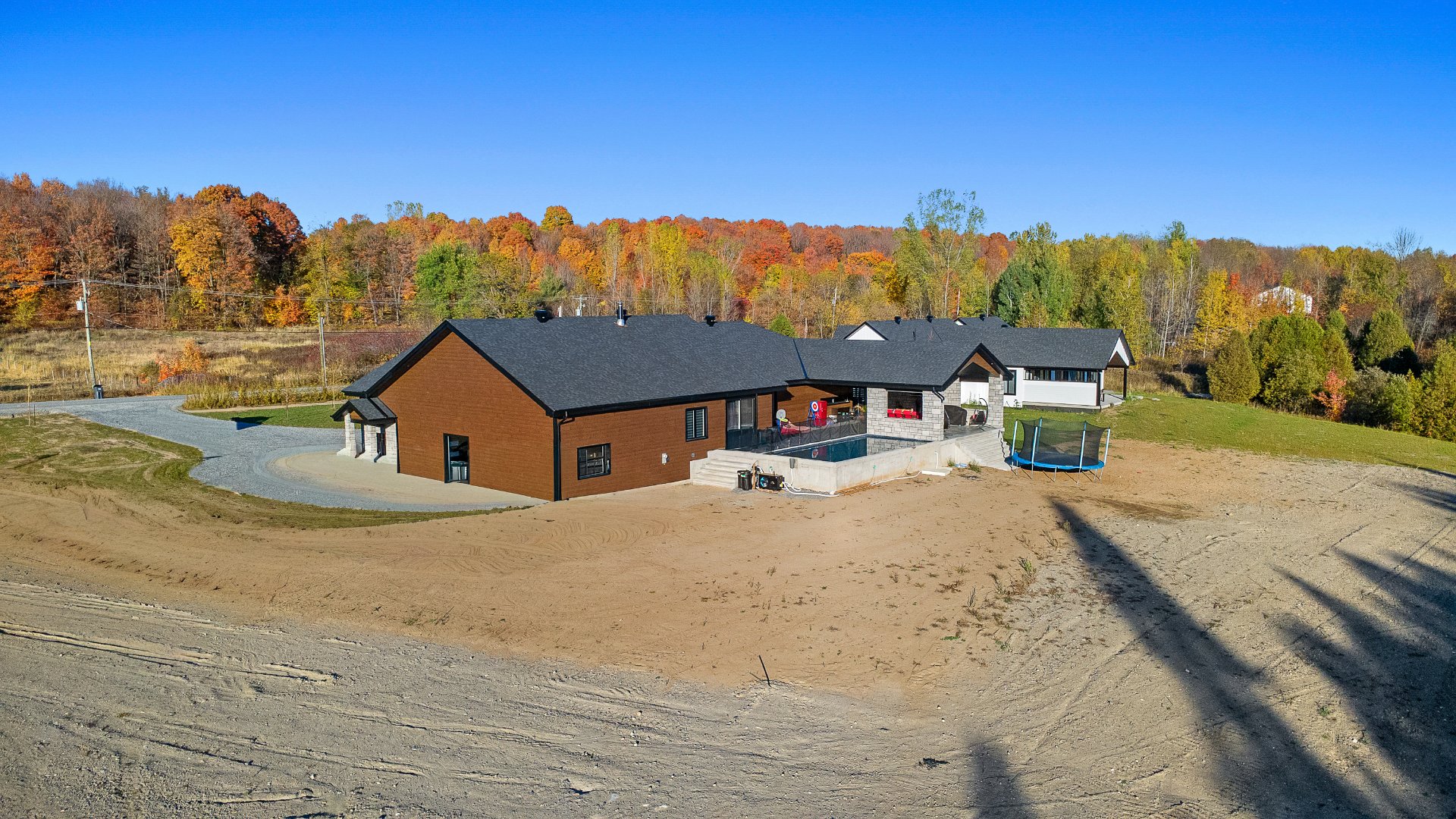 acc piscine creusée, lave-vaisselle, fournaise, chauffe-eau, air climatisé central, 4x ouvre-porte électrique (garage) stores, système d'alarme, chauffe-eau (piscine)